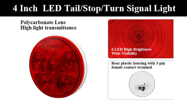 Stop-Turn-Luce posteriore,Fanale posteriore,Luce freno,Rotondo da 4 pollici